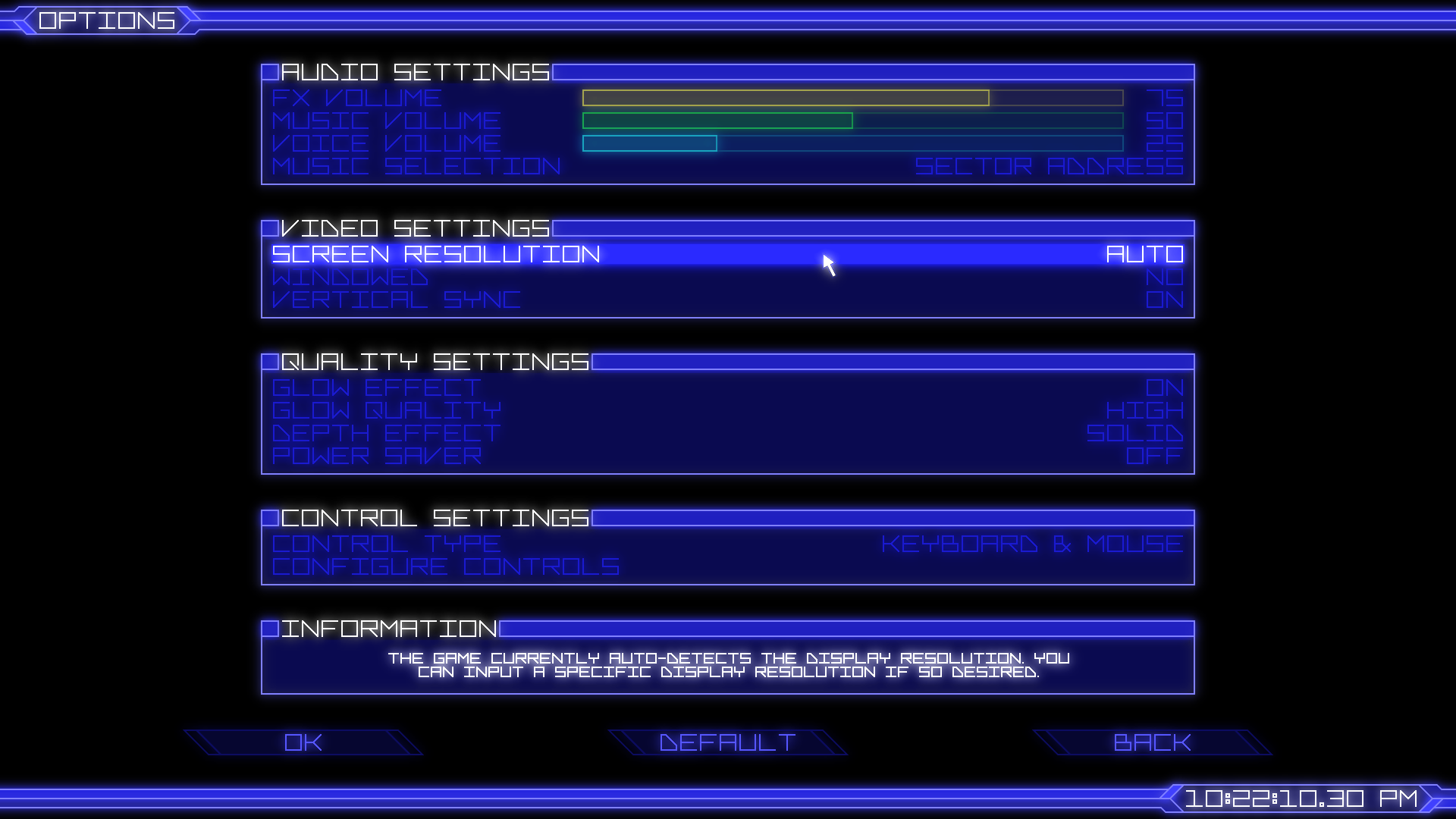 So, why hasn't there been any public alphas released lately? Short Answer: Design issues. Long Answer: The next public alpha's actually been on the verge of being ready to release for weeks now. However, in order for it to flow properly the beginnings of the adventuring aspects need to be implemented, and this is where the major problems have sprouted up is in the design of the adventuring aspects. Originally, Vectorzone was going to be a world-building game. When I removed the spinning camera though, I had to make a tough decision: Remove joystick/gamepad support or remove the world-building aspect. I ultimately decided on the latter, which required a huge amount of redesign work to keep the adventuring aspect of the gameplay intact, since I didn't want to make just another arcade-style twin-stick shooter. However, tiny little problems started sprouting up the more I layed out the design. For instance, the first problem I was faced with was that the design lent itself too easily to module-abuse. People could make about a dozen of the exact same module and get stats that would completely unbalance the game. My initial solution to this problem was to replace the module building system with a module upgrading system. This in turn however made it extremely difficult to get the Plasma Inducer module, something that's rather important early in the game. In fixing this however, I ended up creating a feature that ultimately fell short of what I needed it to do, while at the same time didn't do everything I wanted it to do. Designing a game like this is a huge challenge because of all of these considerations. If I was making a simple arcade shooter, I wouldn't be in this mess. Instead, I'm trying to design a highly dynamic game and the dynamics are working for 95% of everything I come up with, but the remaining 5% of each iteration completely breaks the other 95%. So once again I find myself making some hard design decisions. I thought of a way to re-implement the world-building aspect and still have joystick/gamepad support available. (It basically involves being able to switch between "Shoot Mode" and "Block Mode" at the push of a button.) Another option would be to completely overhaul the module system so that there's fewer modules and you can't equip as many at once, but the modules themselves can be upgraded in various ways. There's other potential options too but no matter how you slice it, some major design work is needed to get this thing back on track. In the interim, here's a couple screenshots of the title screen and the options screen. Yeah, nothing too fancy, and they've actually been implemented for weeks now, but I just wanted to show you guys that I am indeed still working on this thing. ;) |