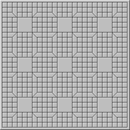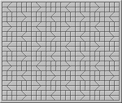 | This intriguing pattern has little pinwheel tiles at regular intervals, with warped tiles all around them. These boards look simple enough to play and they are, just be careful when you get close to the pinwheel tiles. |